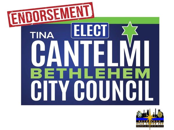 Tina Cantelmi is honored to be endorsed by Bethlehem Star Lodge #20, representing the dedicated members of the Bethlehem Police Department.